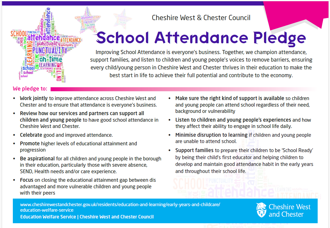 At Neston Primary, we seek to work in partnership with parents to ensure that each child's experience is one that will enable them to make good progress by building on their skills and talents within a continuous and consistent learning environment. If together we are to achieve this aim, regular attendance at school is vital and full parental support and co-operation in this matter is necessary.